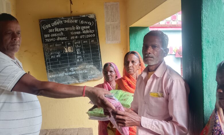 गिरिडीह। बेंगाबाद प्रखंड अंतर्गत मोतीलेदा पंचायत के विभिन्न गांवों में गुरुवार को जन वितरण प्रणाली (पीडीएस) दुकानदारों के माध्यम से लाभुकों के बीच धोती, साड़ी और लूंगी का वितरण किया गया। राज्य सरकार की महत्वाकांक्षी योजना के तहत प्रत्येक राशनकार्डधारी परिवार को मात्र 10 रुपये में साड़ी तथा 10 रुपये में धोती या लूंगी उपलब्ध कराई जा रही है। इस योजना का उद्देश्य गरीब एवं जरूरतमंद परिवारों को त्योहारों के अवसर पर सम्मानपूर्वक जीवनयापन में सहयोग देना है।