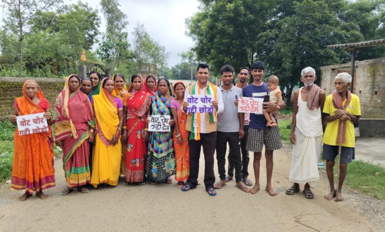 खोजाटोल, गिरिडीह — राहुल गांधी द्वारा हाल ही में वोट चोरी को लेकर किए गए खुलासे के बाद देशभर में राजनीतिक हलचल तेज हो गई है। इसी सिलसिले में ग्राम खोजाटोल में कांग्रेस नेता अनिल चौधरी के नेतृत्व में जोरदार नारेबाजी के साथ प्रतीकात्मक विरोध प्रदर्शन आयोजित किया गया। प्रदर्शनकारियों ने ‘वोट चोर गद्दी छोड़ो’ और ‘लोकतंत्र बचाओ’ के नारों से पूरे माहौल को गुंजायमान कर दिया।